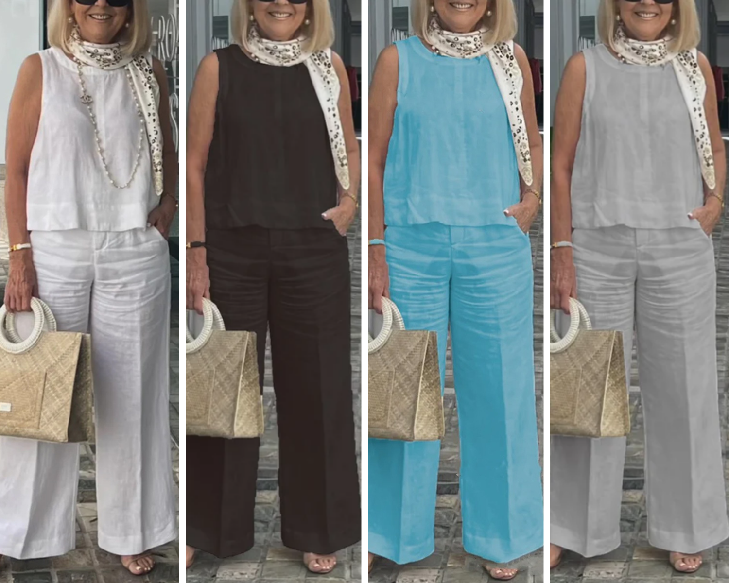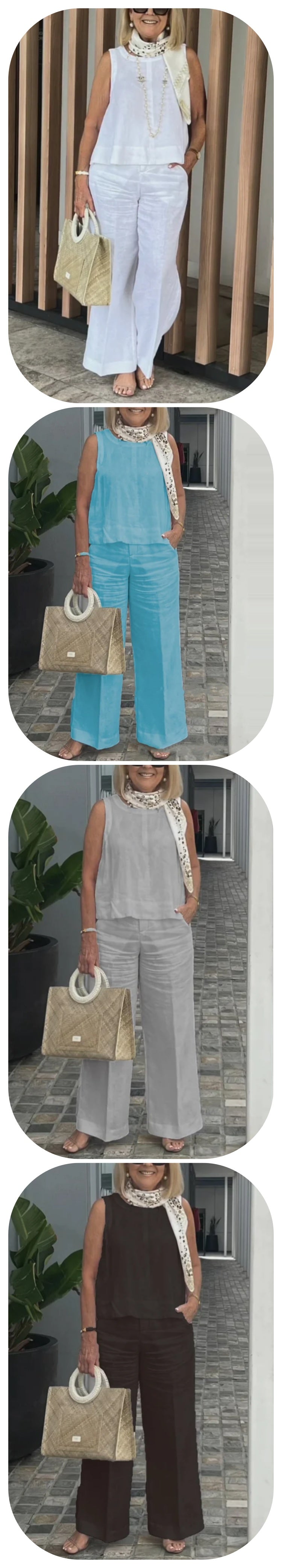 SIMPLE & ELEGANT: Features a simple and timeless design that exudes elegance and sophistication. The round-neck sleeveless top pairs seamlessly with the wide-leg pants, creating a polished and put-together look.