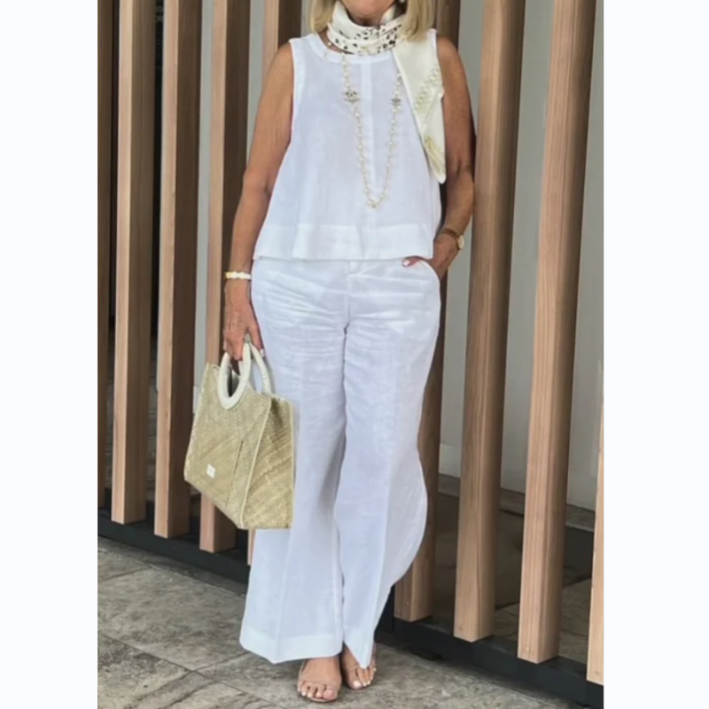 • Women's Simple Breathable Suit - Round-Neck Sleeveless Top & Wide-Leg Pants